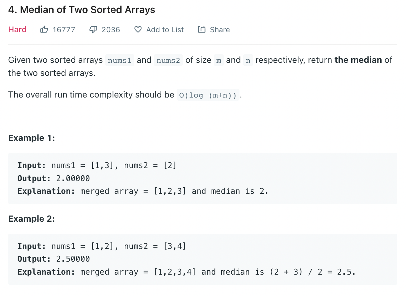 Median of Two Sorted Arrays - LeetCode